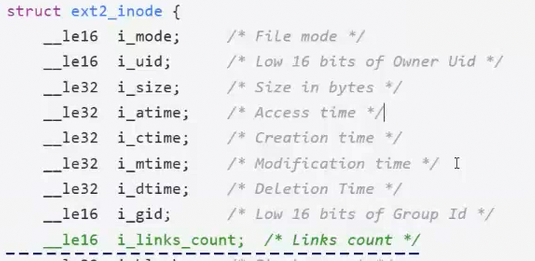 - 硬链接数表示有多少文件名指向这个inode号