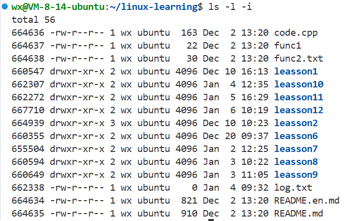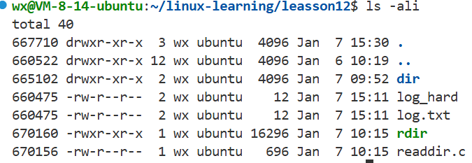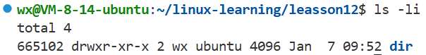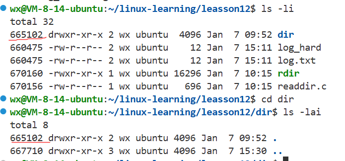 当前目录硬链接数为3:上级目录中有leasson12,当前目录的" . " , dir目录中的" .. "