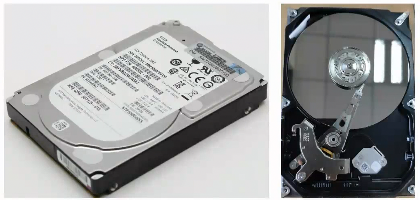 - 盘片、磁头、磁头臂、主轴电机等核心部件都被封装在金属密封腔体内,防止灰尘进入导致磁头或盘片损坏。