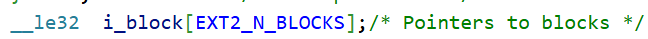 一个文件inode结构体中有一个数据块数组,存储保存文件内容用到的数据块编号。