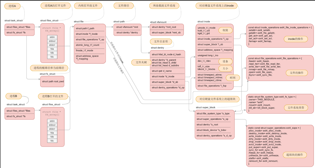 - 还包含了当前文件的文件名:struct qstr d_name;