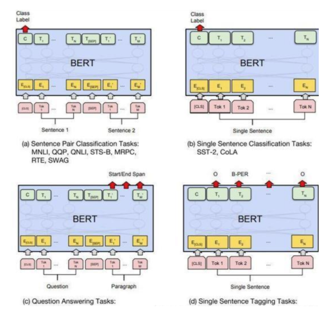 Bert 可以被微调以广泛用于各类任务,仅需额外添加一个输出层,无需进行针对任务的模型结构调整,就在文本分类,语义理解等一些任务上取得了 state-of-the-art 的成绩。