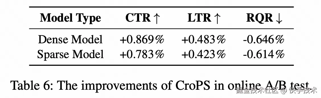 **目前,CroPS 已在快手搜索业务中实现全量部署,服务亿级用户。**实测表明,该方案在具备极强的架构普适性的同时,显著提升了 CTR 与长播率,并有效降低用户换 Query 率,优化用户搜索体验。