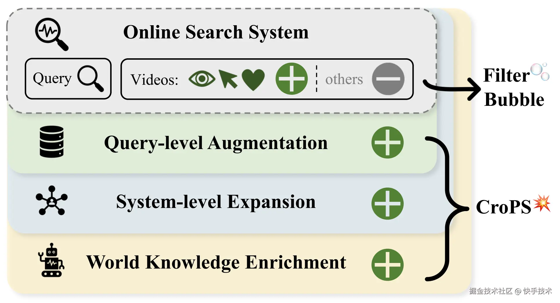 针对这一挑战,快手搜索团队提出了 CroPS 框架,从根源上打破数据闭环。CroPS 首次在业界引入"跨视角"的正样本信号,重塑了检索模型的训练图景。