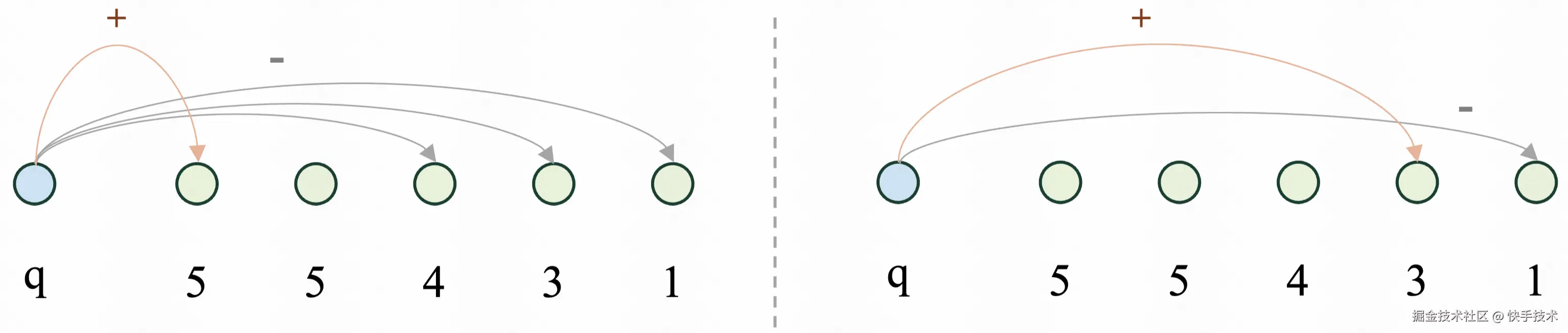 若当前样本是"用户换 Query(标签 5)",H-InfoNCE 会将其与"标签 ≤4 的所有样本(包括推荐正例、曝光未点击样本、负样本等)"一起对比,强制模型学习"标签 5 样本与查询的相似度,必须高于所有低标签样本"。