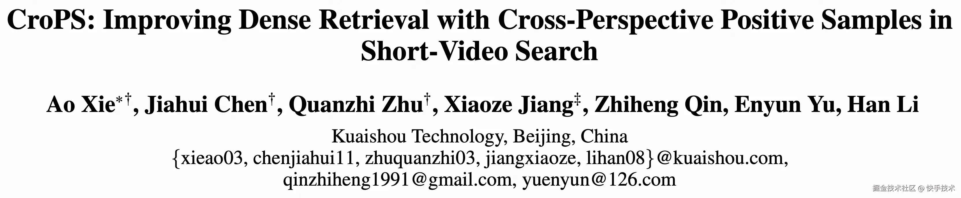 目前,本工作相关成果《CroPS: Improving Dense Retrieval with Cross-Perspective Positive Samples in Short-Video Search》已被人工智能顶级会议 AAAI 2026 Oral 接收。