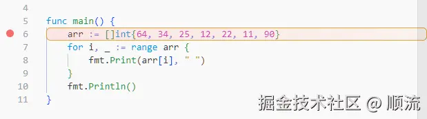 原始代码: 设置断点后: