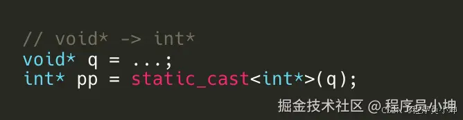 这本质上等价于老式 C 风格的 int* pp = (int*)q;,但 static_cast 更安全。
