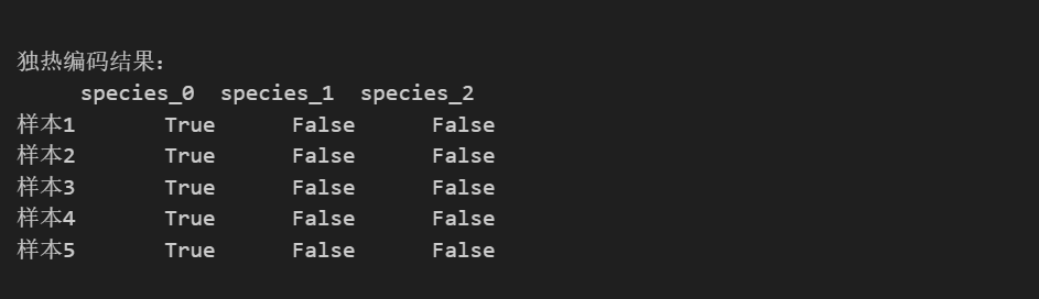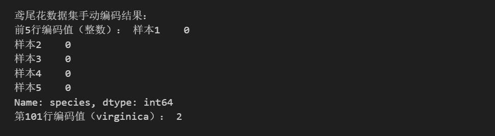 print("第101行编码值(virginica):", species_encoded.iloc[100])