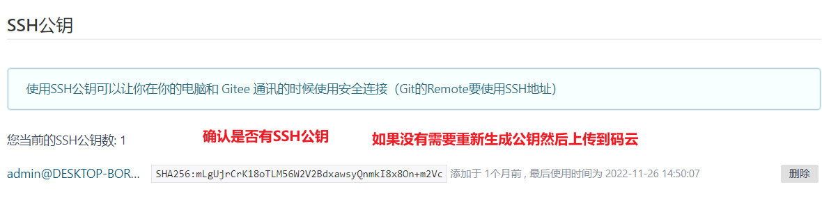 密钥生成后需要在码云上配置密钥本地才可以顺利访问