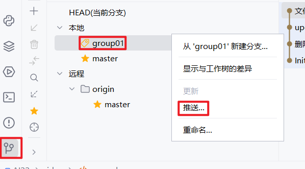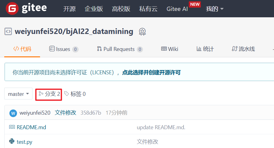 新建分支,然后推送(push)一下, 在gitee中可以看到新建的分支