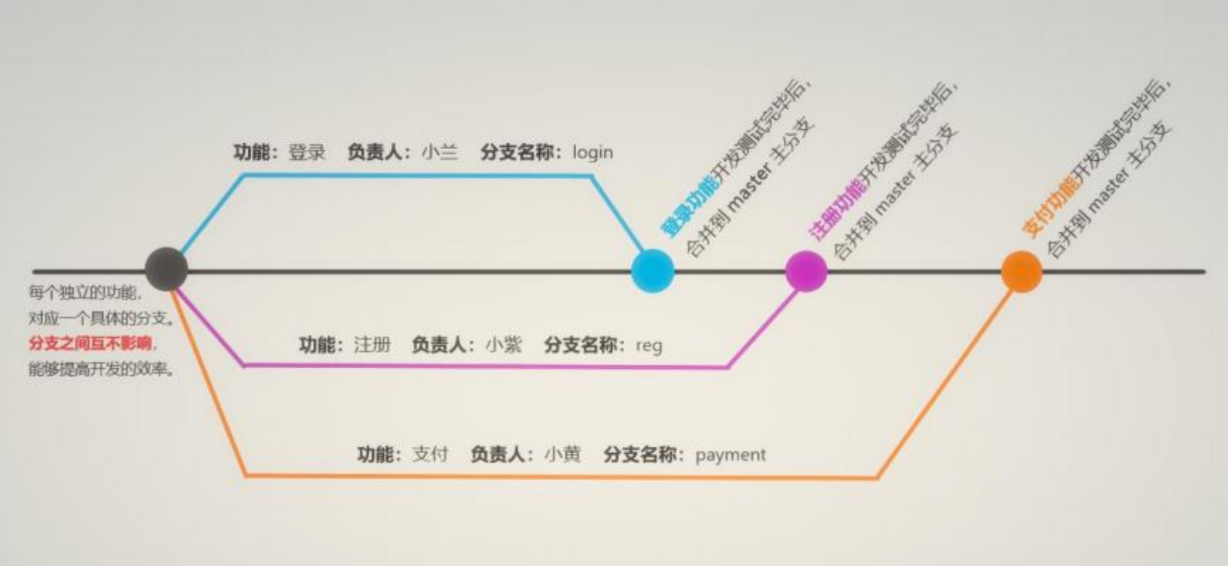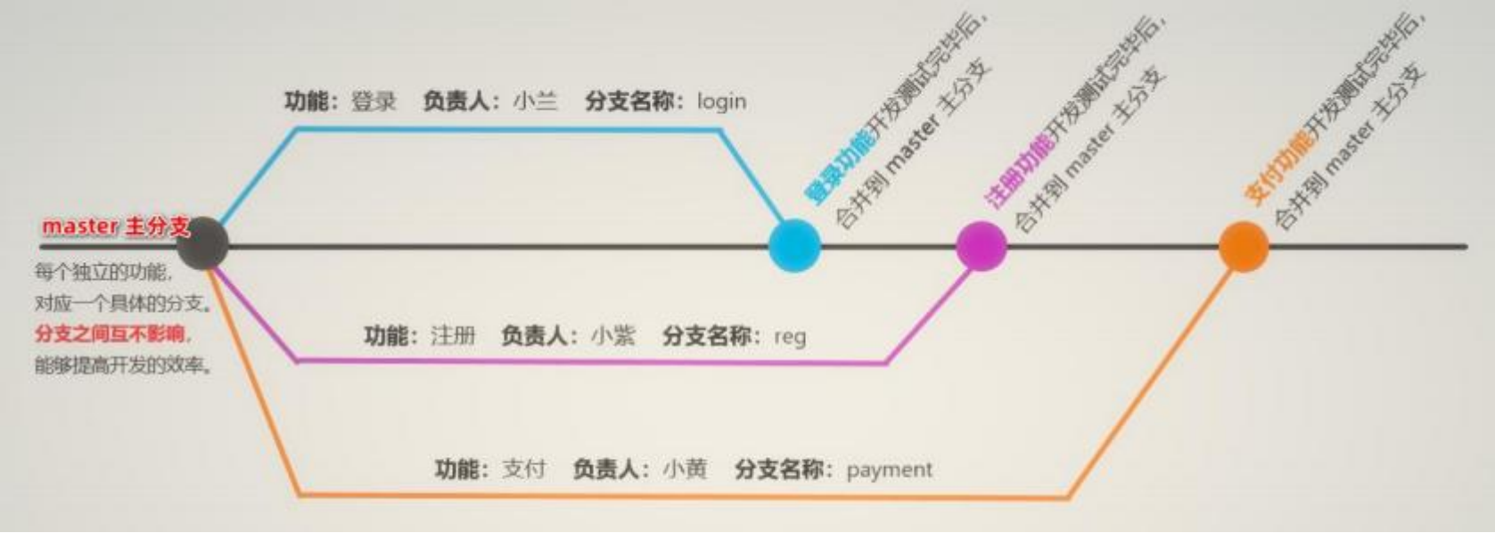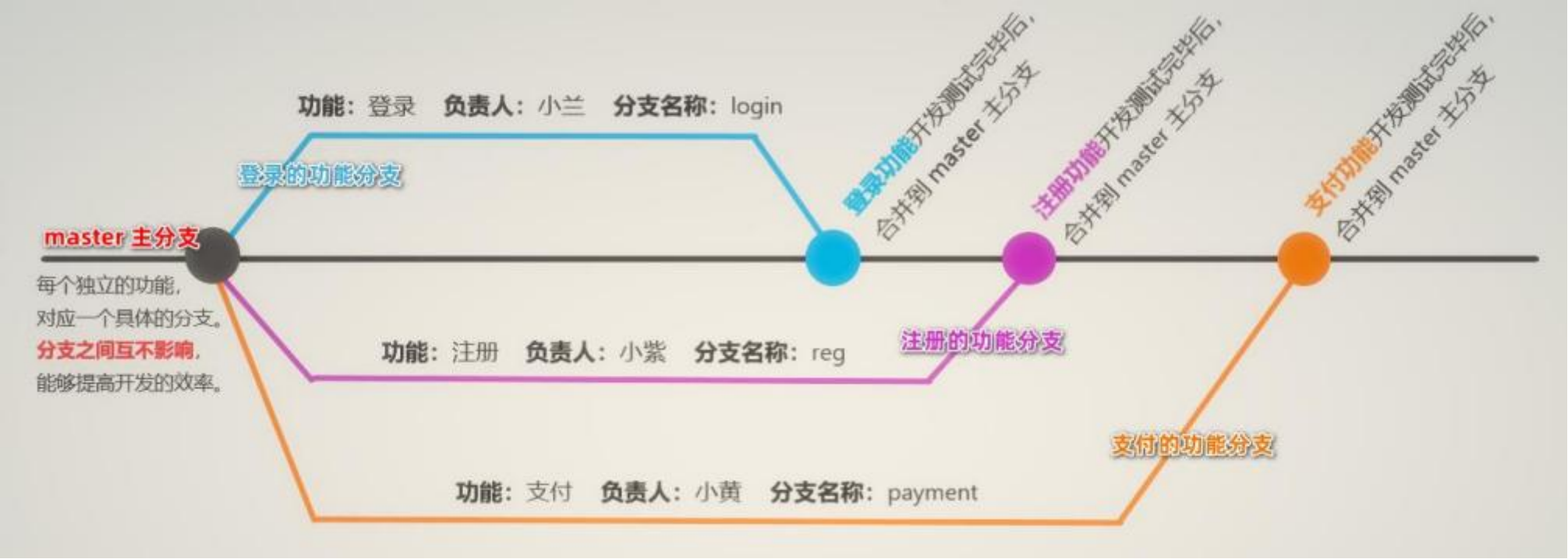 协作方便:基于版本控制软件提供的分支功能,可以轻松实现多人协作开发时的代码合并操作