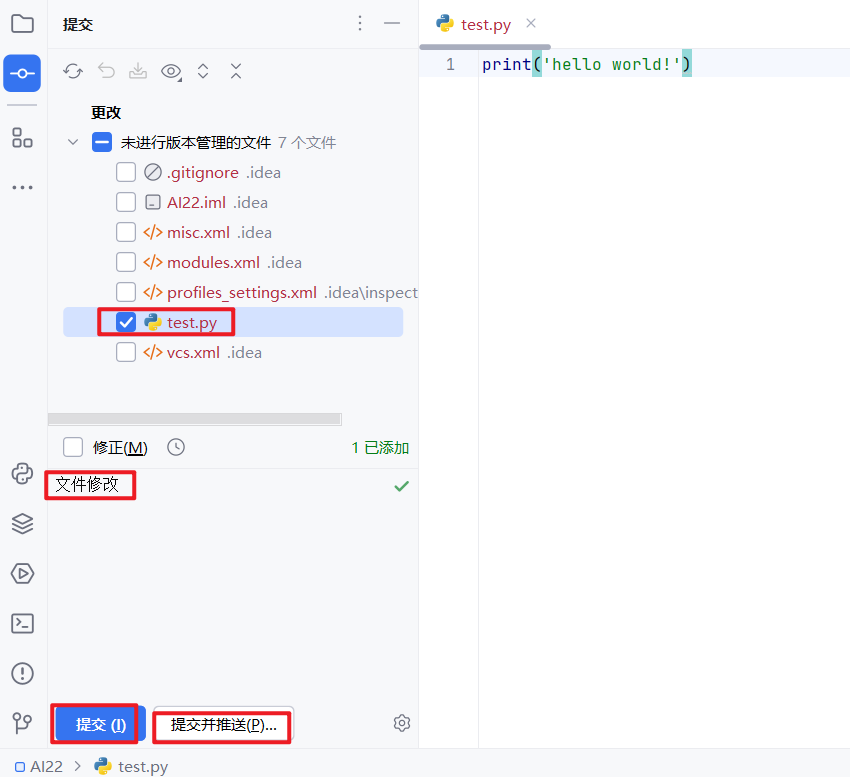 commit 文件提交到本地 注意:.idea目录下的文件不要提交
