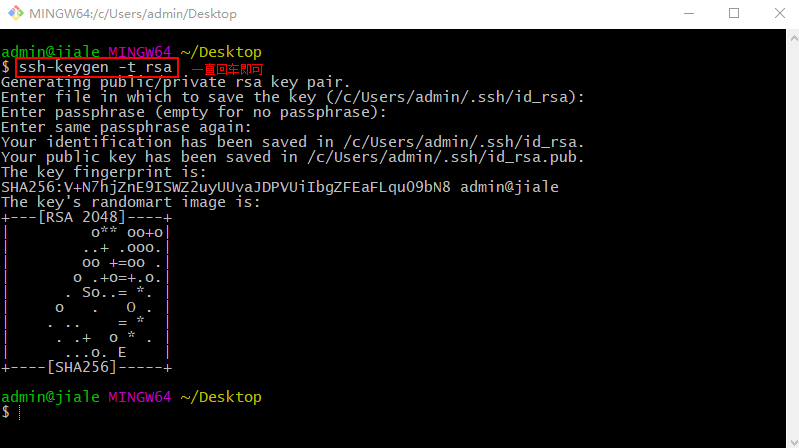 执行命令完成后,在window本地用户.ssh目录C:\Users\用户名\.ssh下面生成如下名称的公钥和私钥: