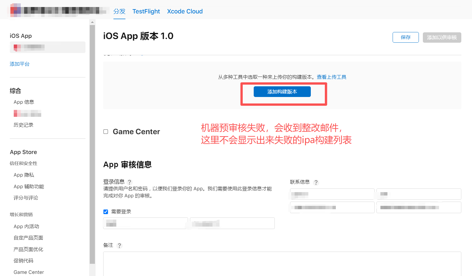 预审核就是把ipa上传到AppStoreConnect后,机器扫描ipa里代码的静态库sdk代码是否包含恶意代码、私有api等违规的问题代码,如果有会直接发邮件给开发者邮箱里,告知具体的整改问题,并且这种预审不通过的ipa构建版本是不显示在AppStoreConnect里用来提交审核的构建版本列表里的,并且在TestFlight的构建列表里显示状态是"失败",这个预审核状态不多说了,一般本机上传完ipa的20分钟内,具体看ipa大小,会收到邮件预审核成功还是失败,如果失败,根据邮件修改后新上传就行。