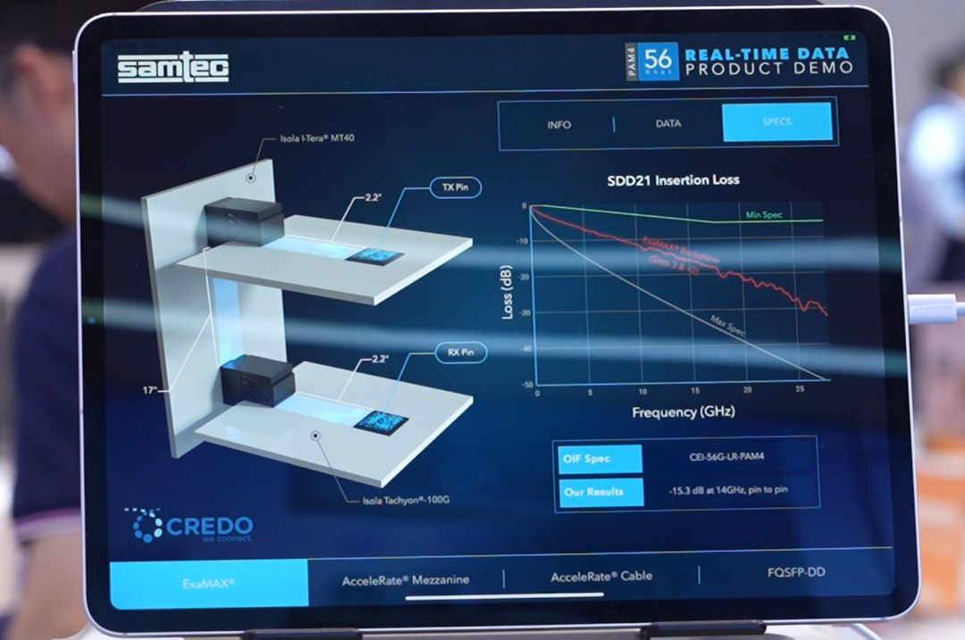 现场,我们呈现了多个Samtec连接器产品运行在56G速率的优秀性能表现。