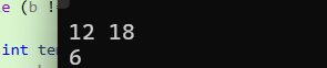 - 第二次循环:temp=18%12=6 → a=12,b=6