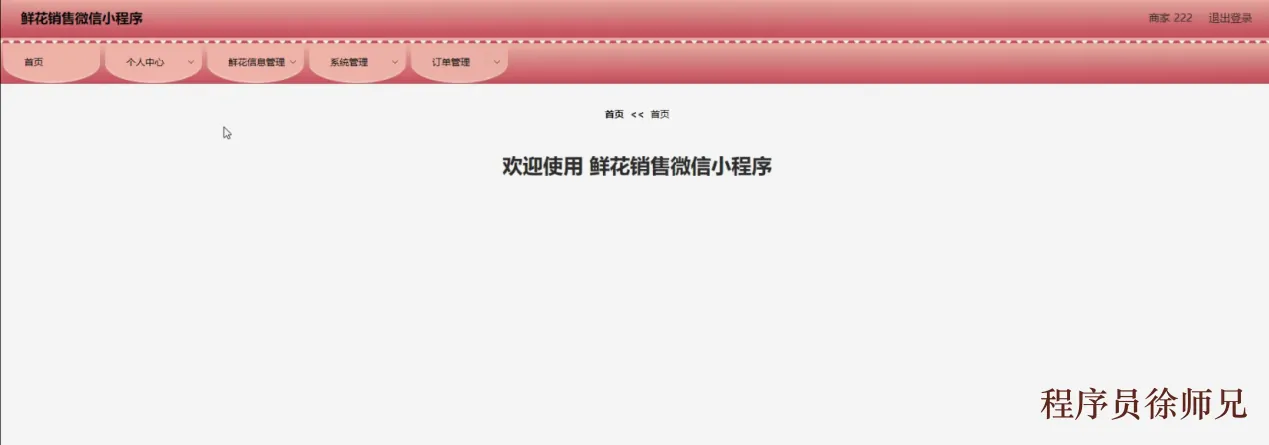 商家登陆系统后,可以对首页、个人中心、鲜花信息管理、系统管理、订单管理等功能进行相应操作,如图4-7所示。