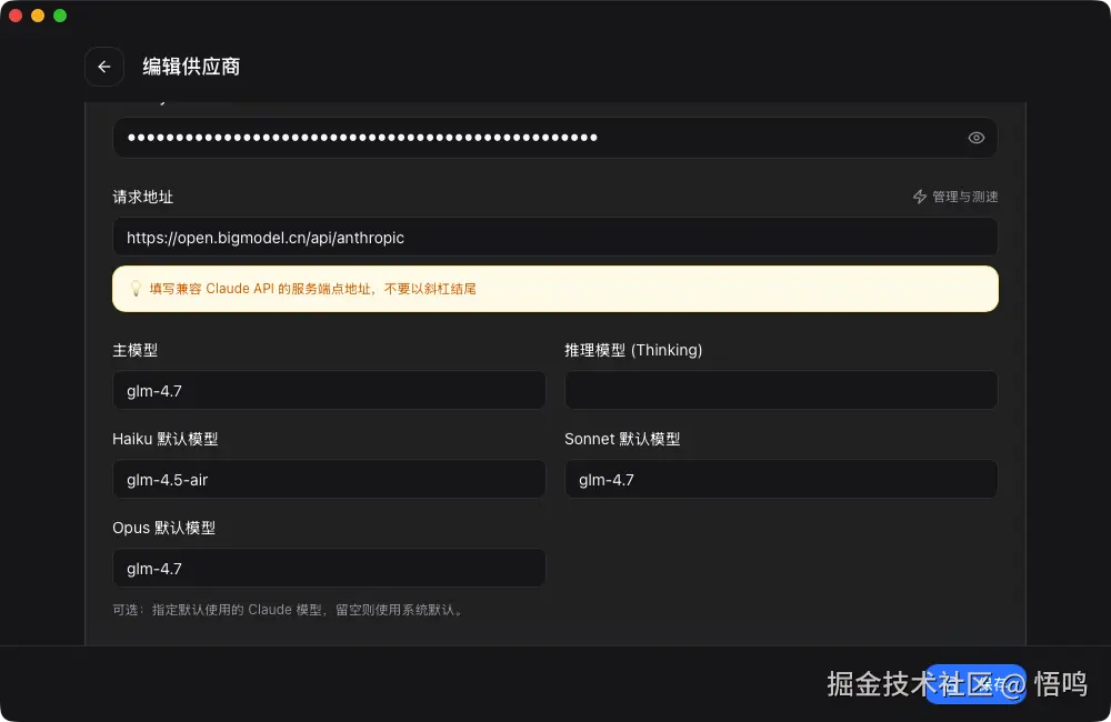 配置完成之后可以在这里对不同的模型服务商进行快速切换。