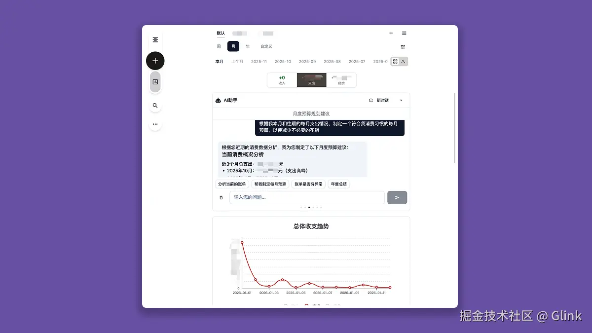 至此,基于智谱GLM-Flash的,能够动态进行账单分析的ReAct模式版AI助手功能正式上线Cent,我尝试了预设提示词,每个提示词都能很好地完成从函数调用到数据分析的完整链路,即使是"生成年度总结"这种需要多步推理和函数调用的问题,模型也能很好地一步步进行执行和汇总,效果让我十分满意,只是受限于模型本身的参数,生成的回答深度比起其他闭源模型还是差了点意思,不过智谱的API是我暂时能找到的唯一免费,且支持跨域的API了,还要啥自行车呢。