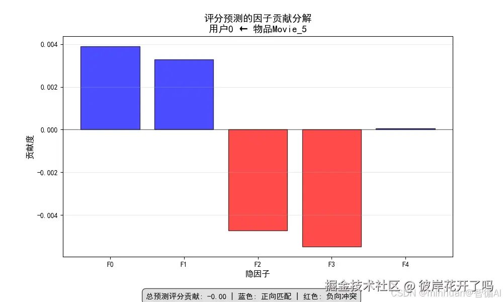 - 主要正向贡献:用户与物品在哪些因子上高度匹配