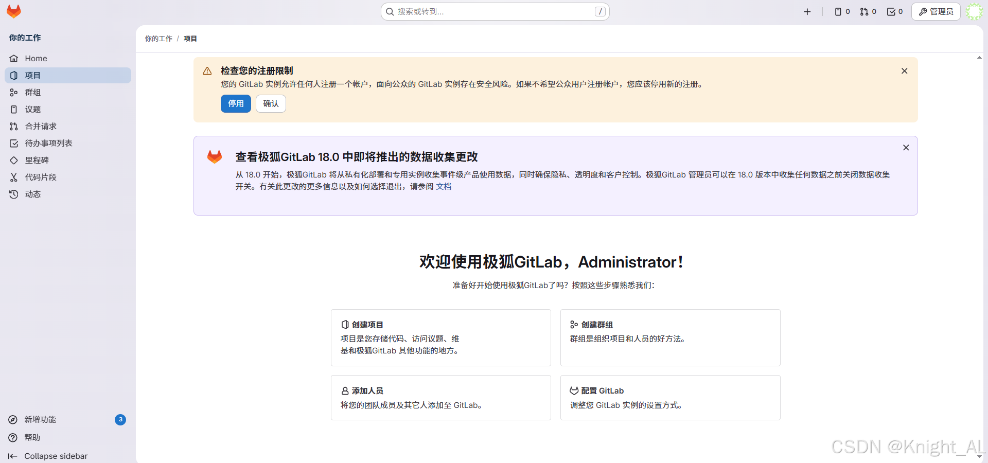 - GitLab 初始化尚未完成(首次启动需要几分钟,稍等后刷新即可)