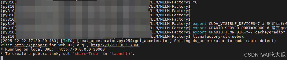 export GRADIO_SERVER_PORT=30000 # 指定gradio的端口(默认是7860,这里修改为30000)