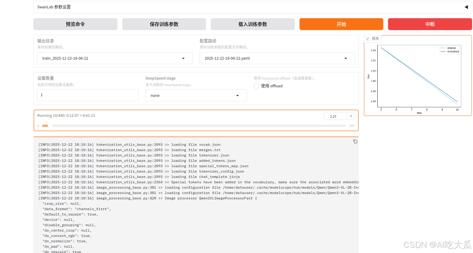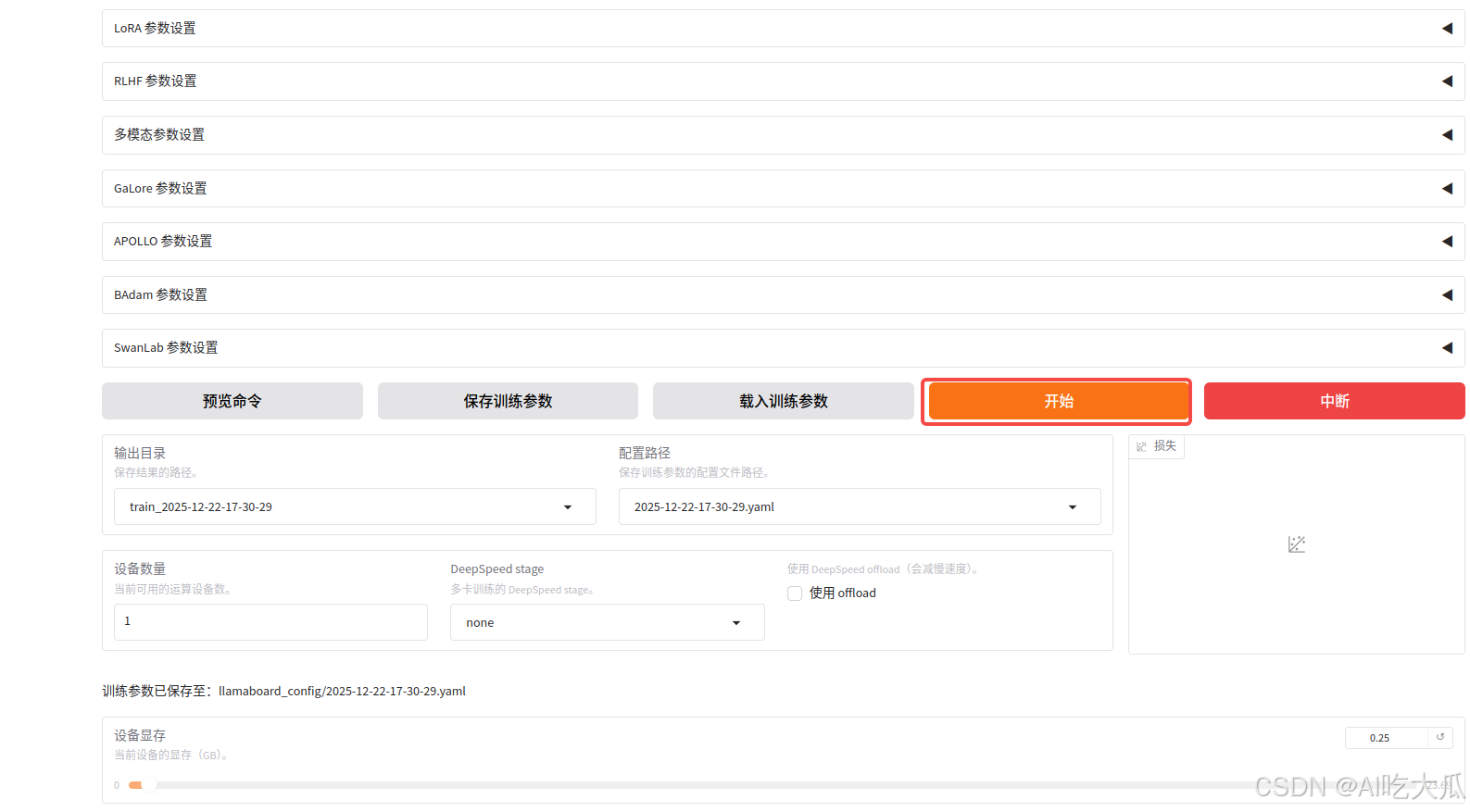 - 开始: 一切准备好后,点击开始训练