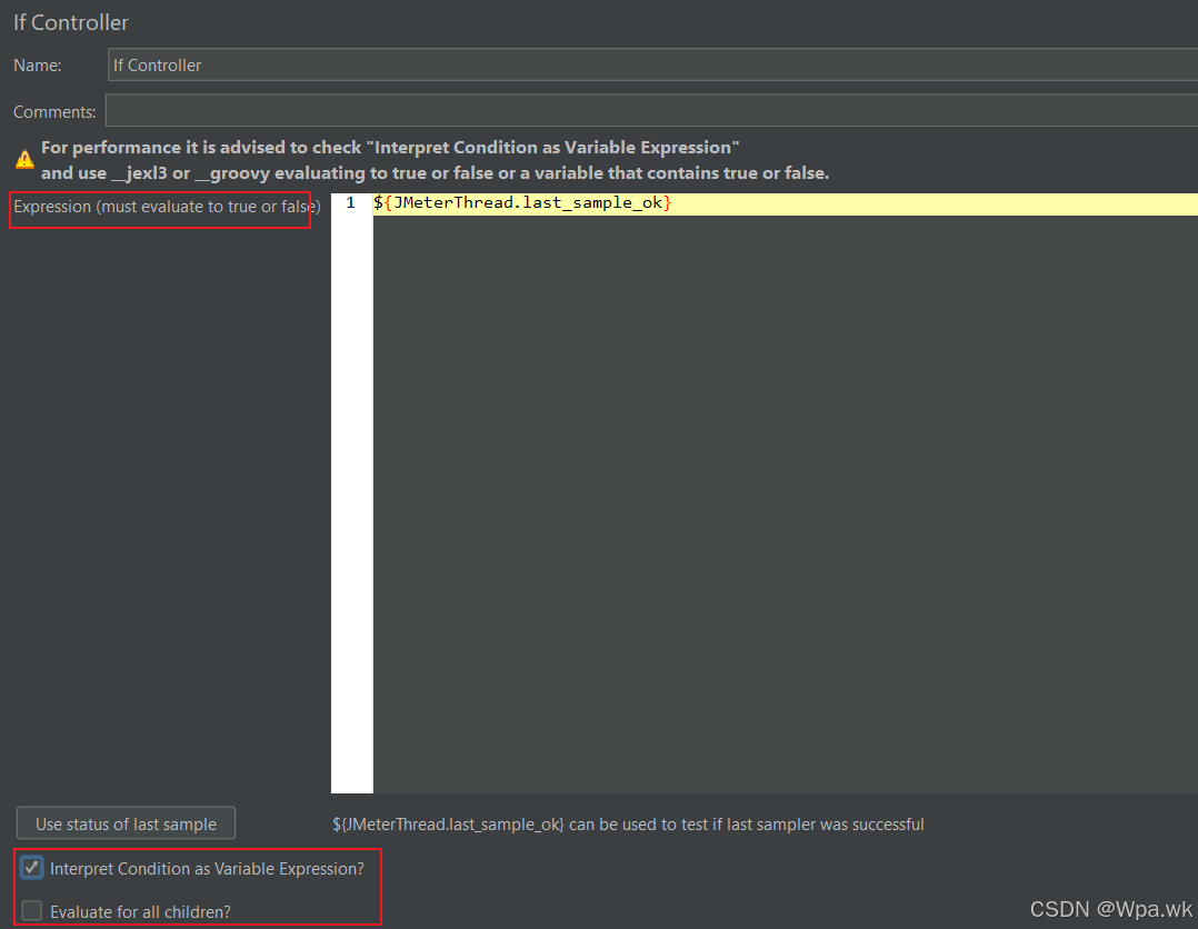 - 勾选:表达式会在 if controller 节点下的每个取样器之前执行一次,根据表达式结果判断是否执行该取样器。