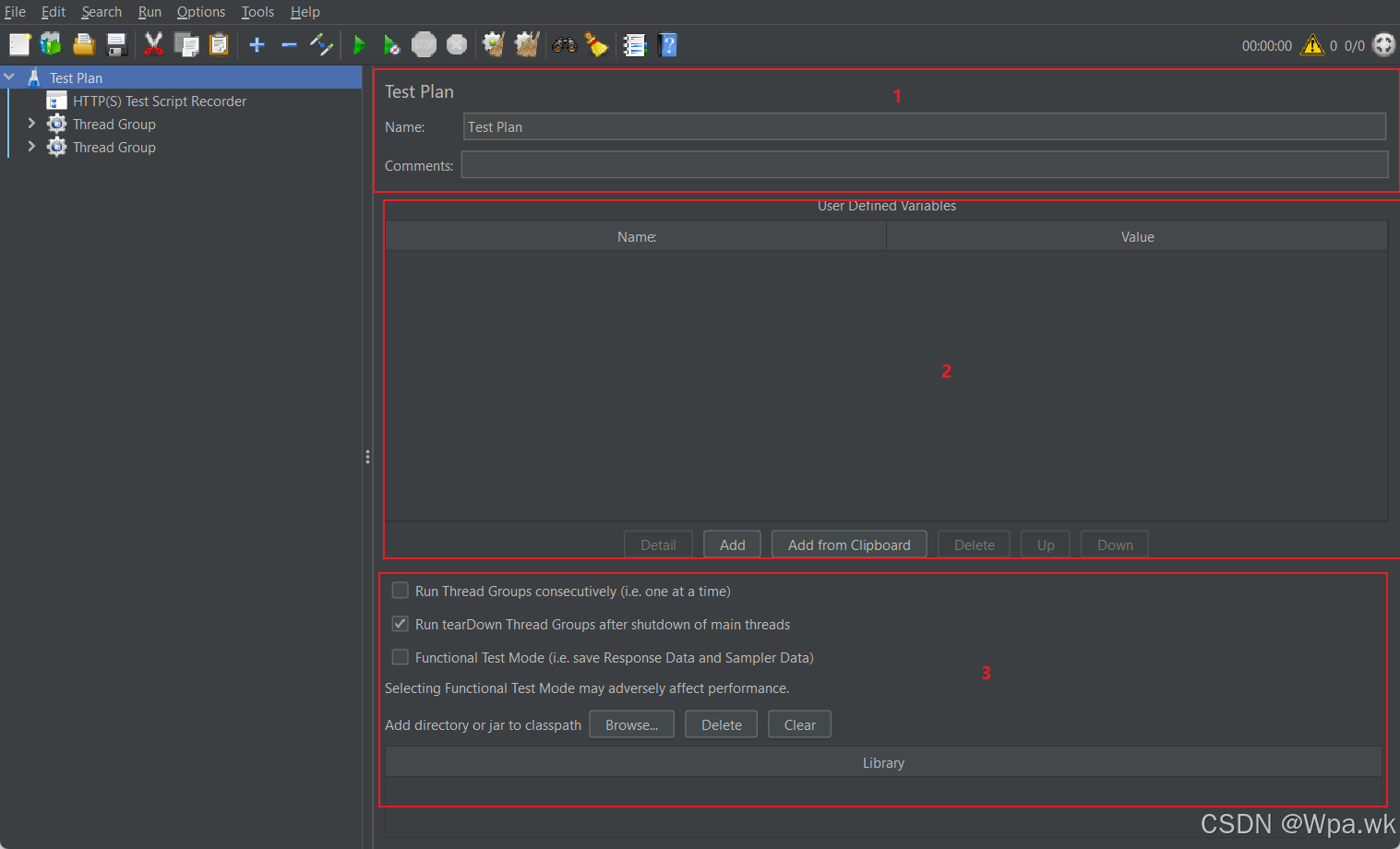 第三部分:对测试计划的设置, 从上到下的设置为: