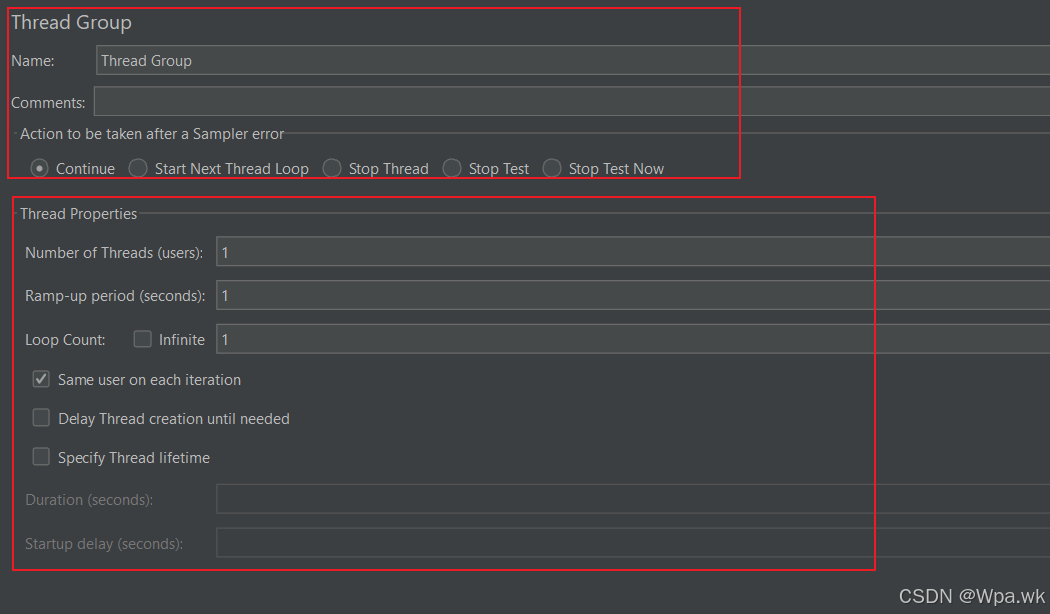 - Specify Thread lifetime:定义线程调度时间。勾选之后,即可设置之后的两个属性: