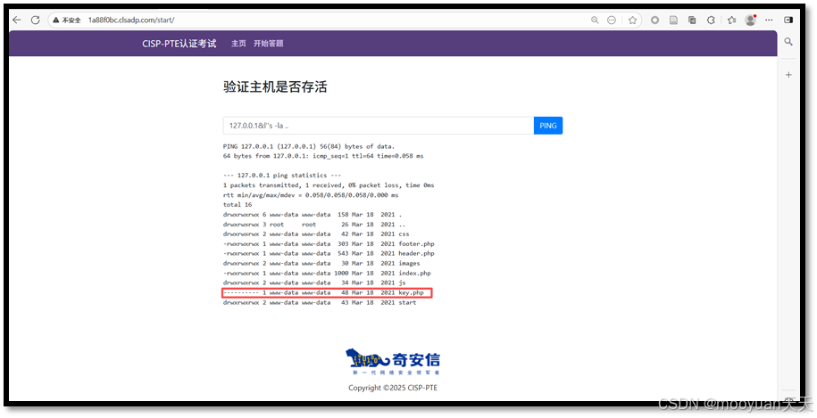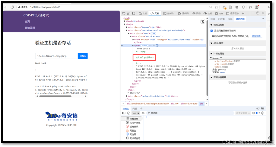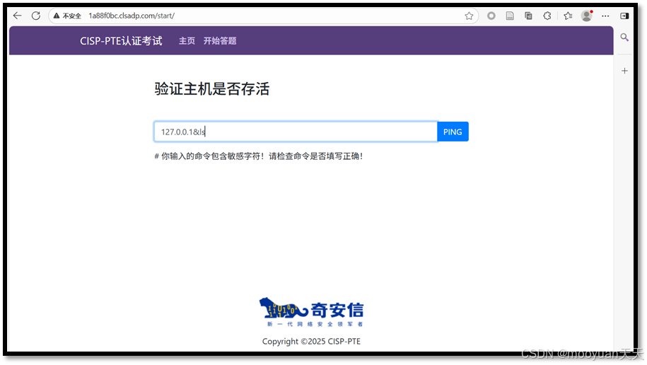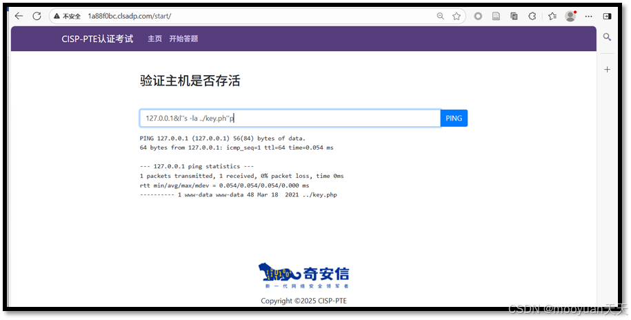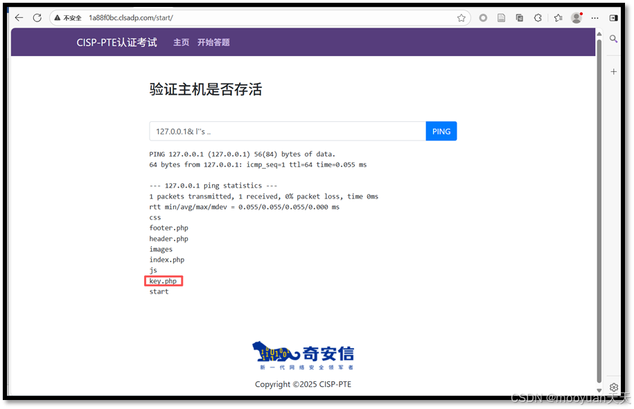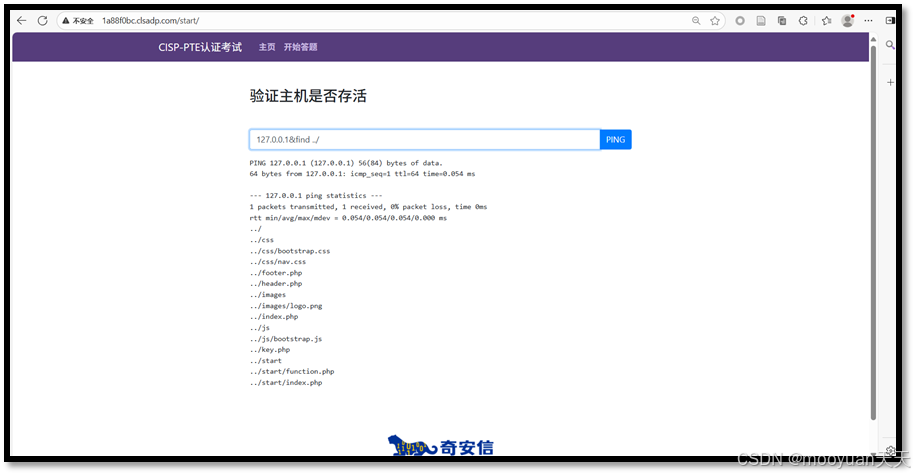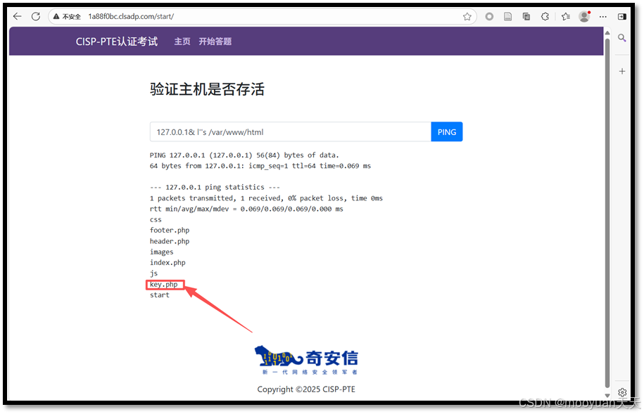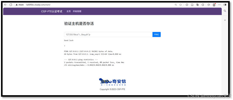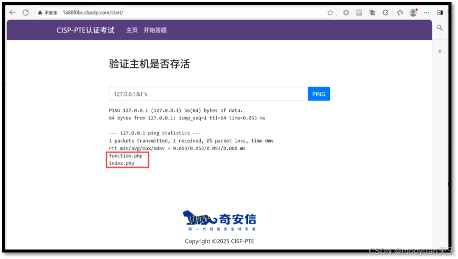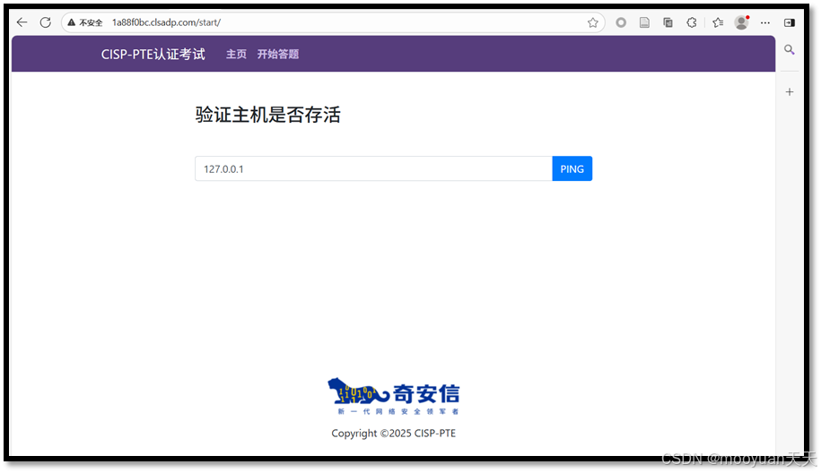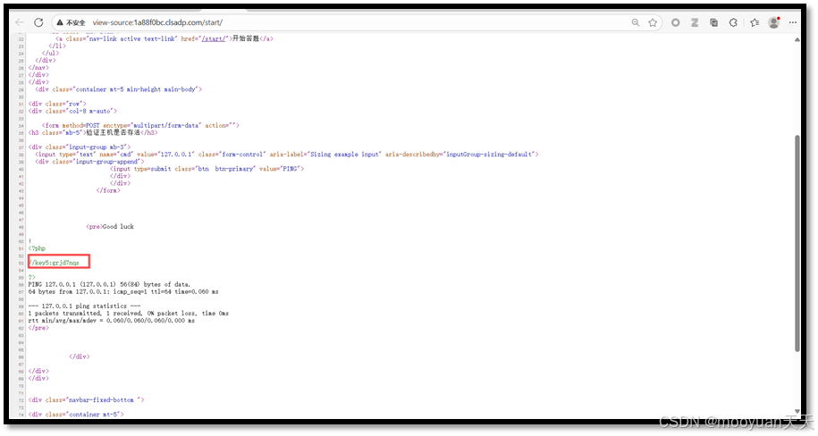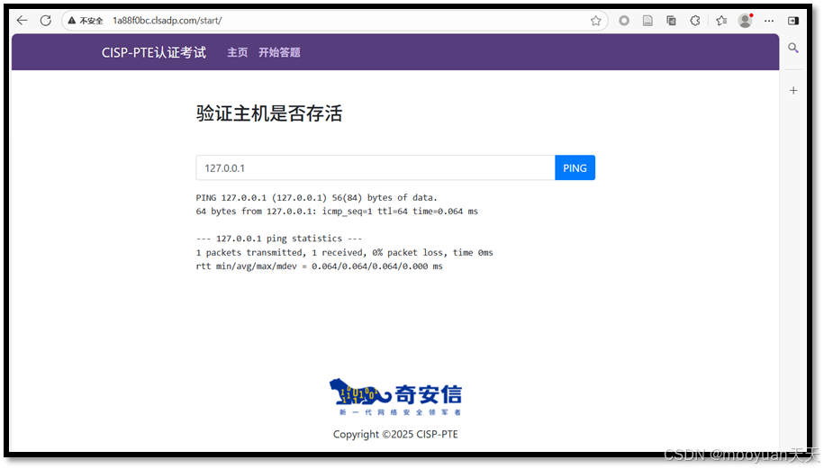 点击进入答题,这是一个ping页面,默认输入为127.0.0.1,如下所示