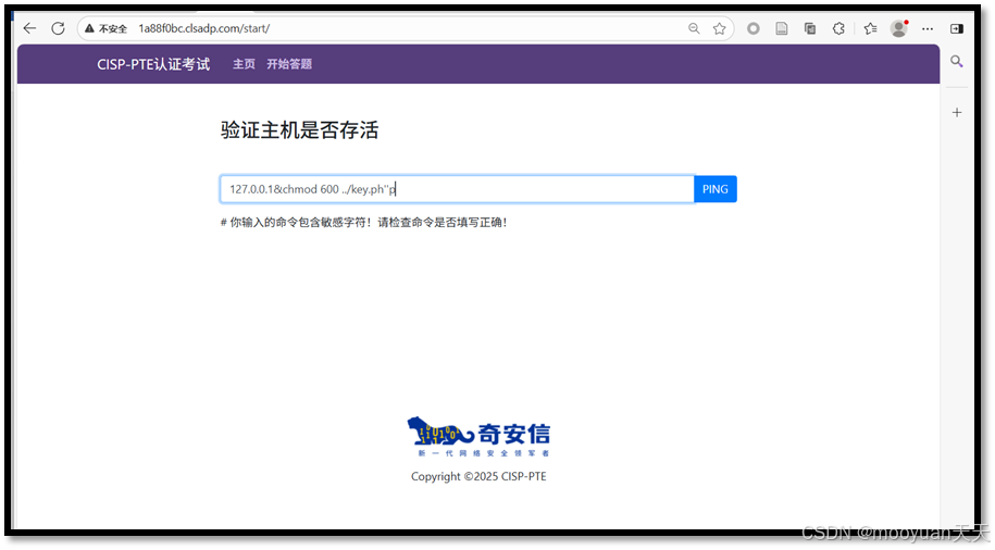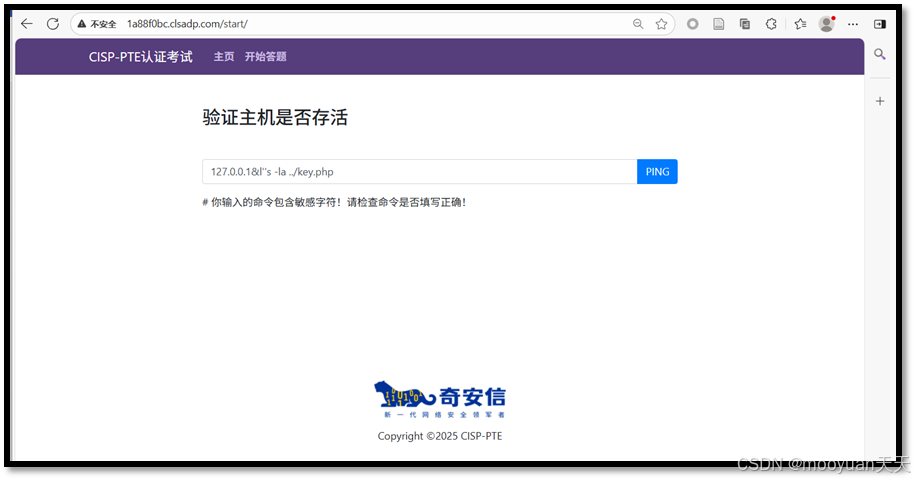 本文通过详细讲解CISP-PTE靶场命令执行关卡渗透实战的全流程,成功利用单双引号绕过命令执行后台的过滤函数、通过查看目录文件、查找key文件的权限、修改key文件的权限、查看key文件四个步骤获取flag。