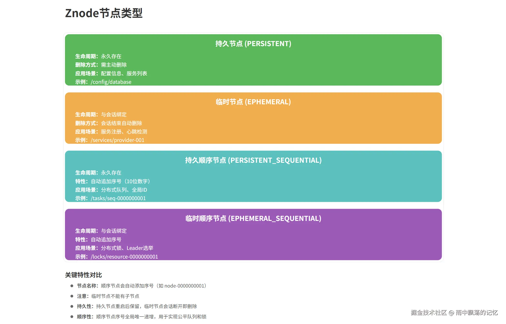 根据节点的生命周期和特性,Znode可以分为四种类型: