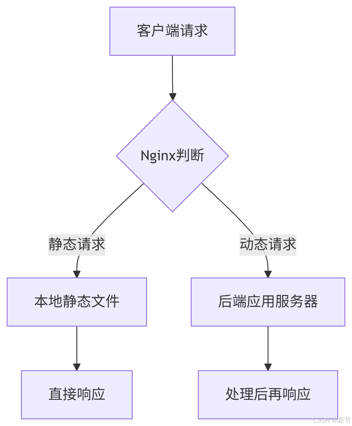Nginx 直接返回:客户端 → Nginx → 硬盘文件 → 返回客户端(仅需 2 步跳转)