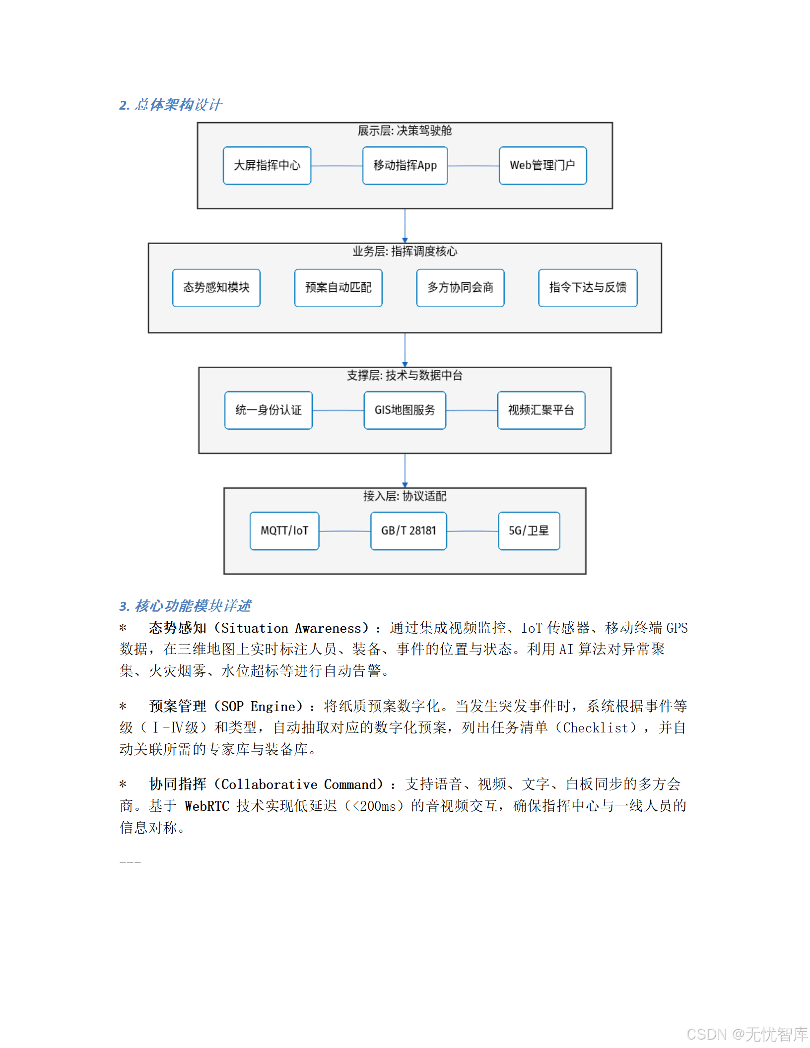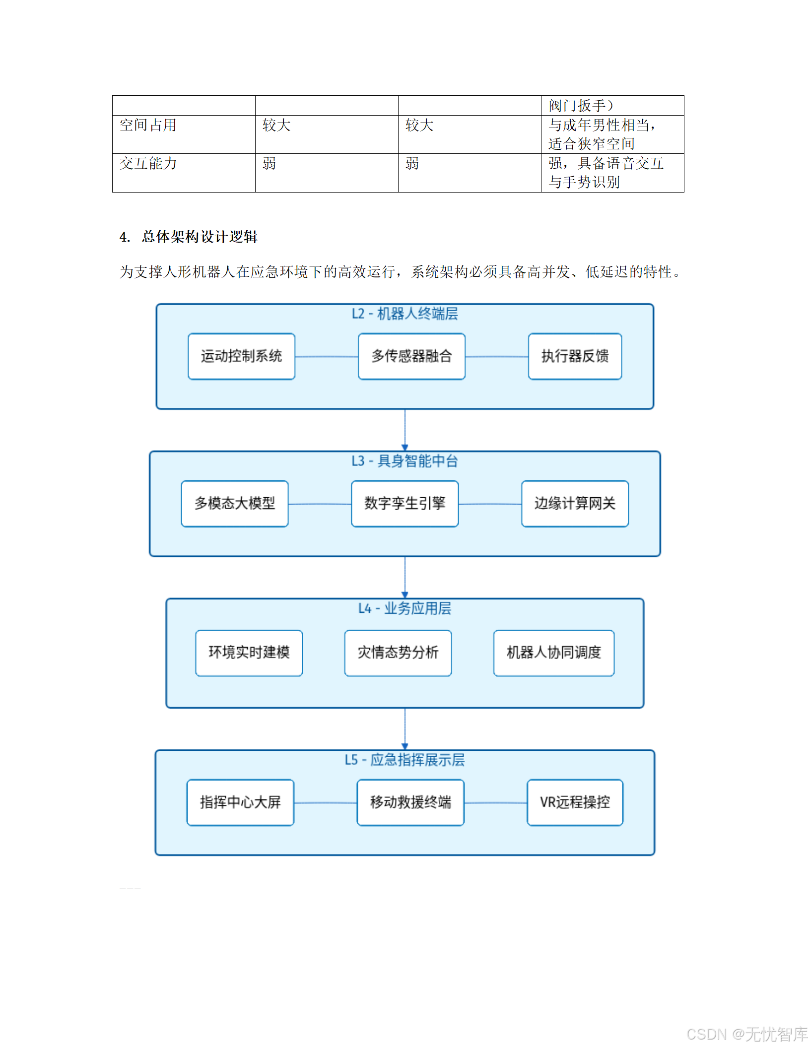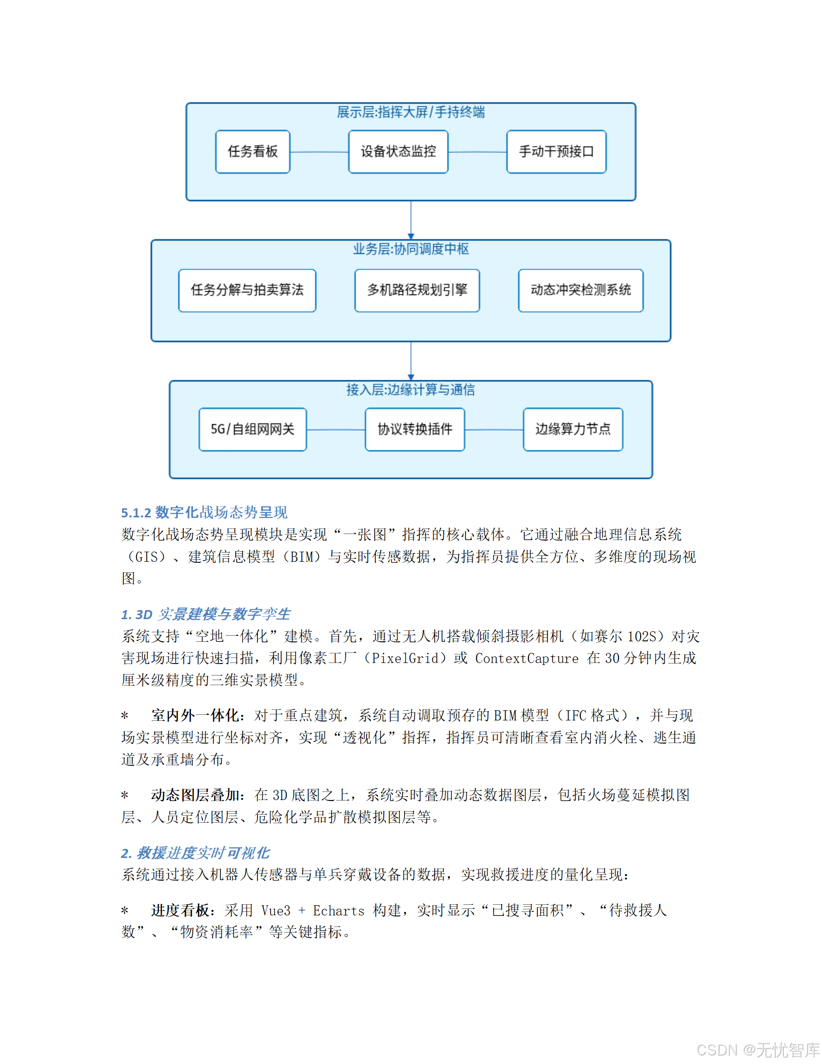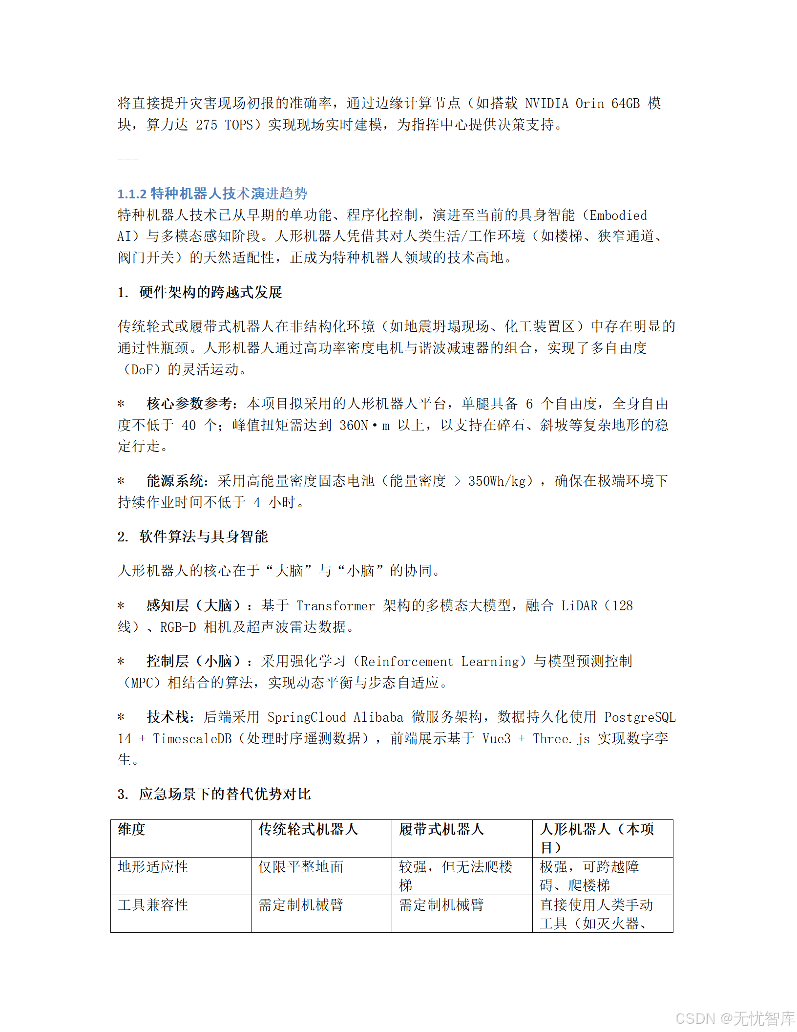 摘要:本文全面拆解《某应急救援中心特种人形机器人救援分队与装备保障建设方案》,从顶层设计、阶段目标、核心指标到技术架构,逐层剖析如何打造一支"召之即来、来之能战、战之必胜"的智能化救援力量。全文超8000字,深度结合国家标准、前沿技术与实战需求,为智慧应急体系建设提供可落地的参考范本。