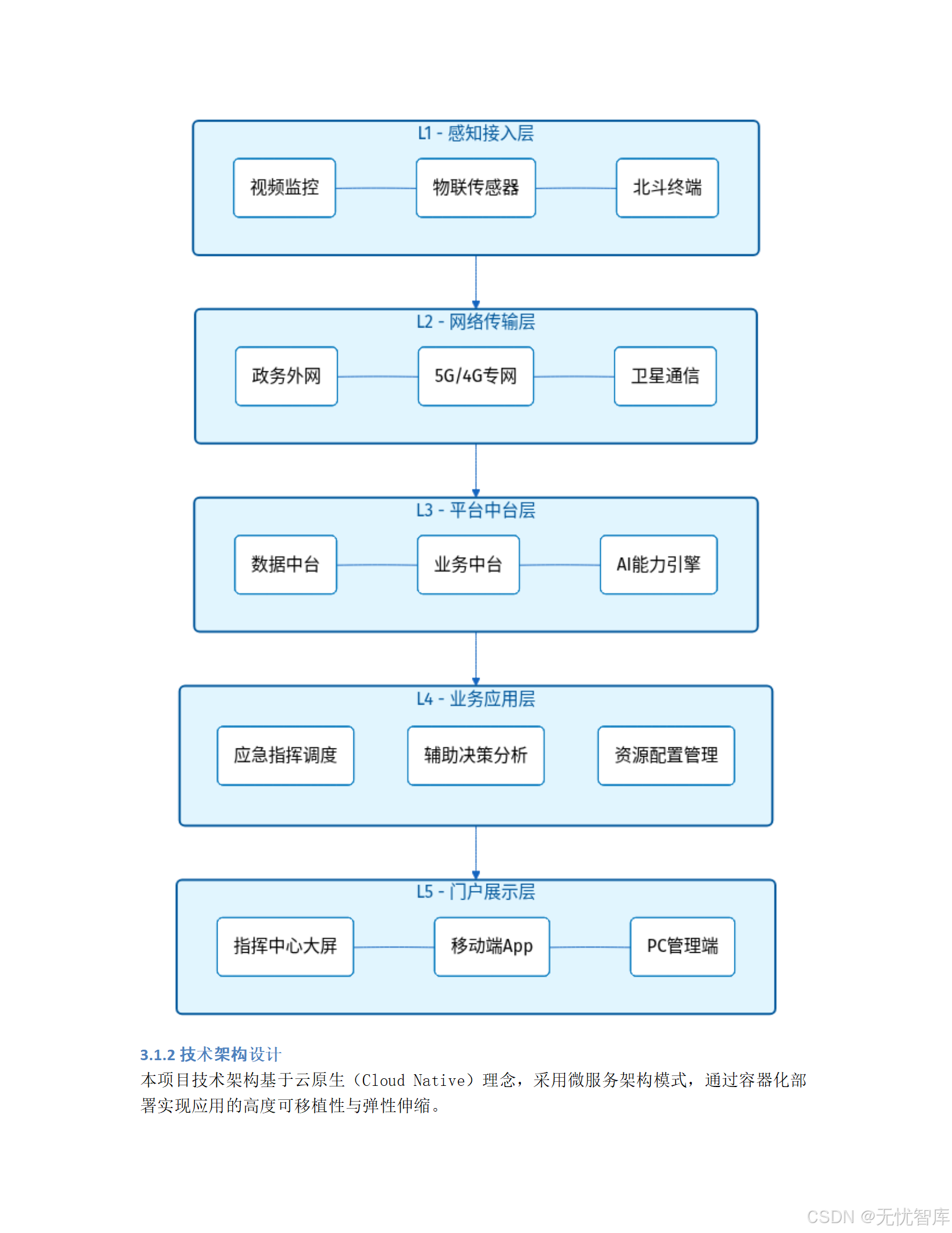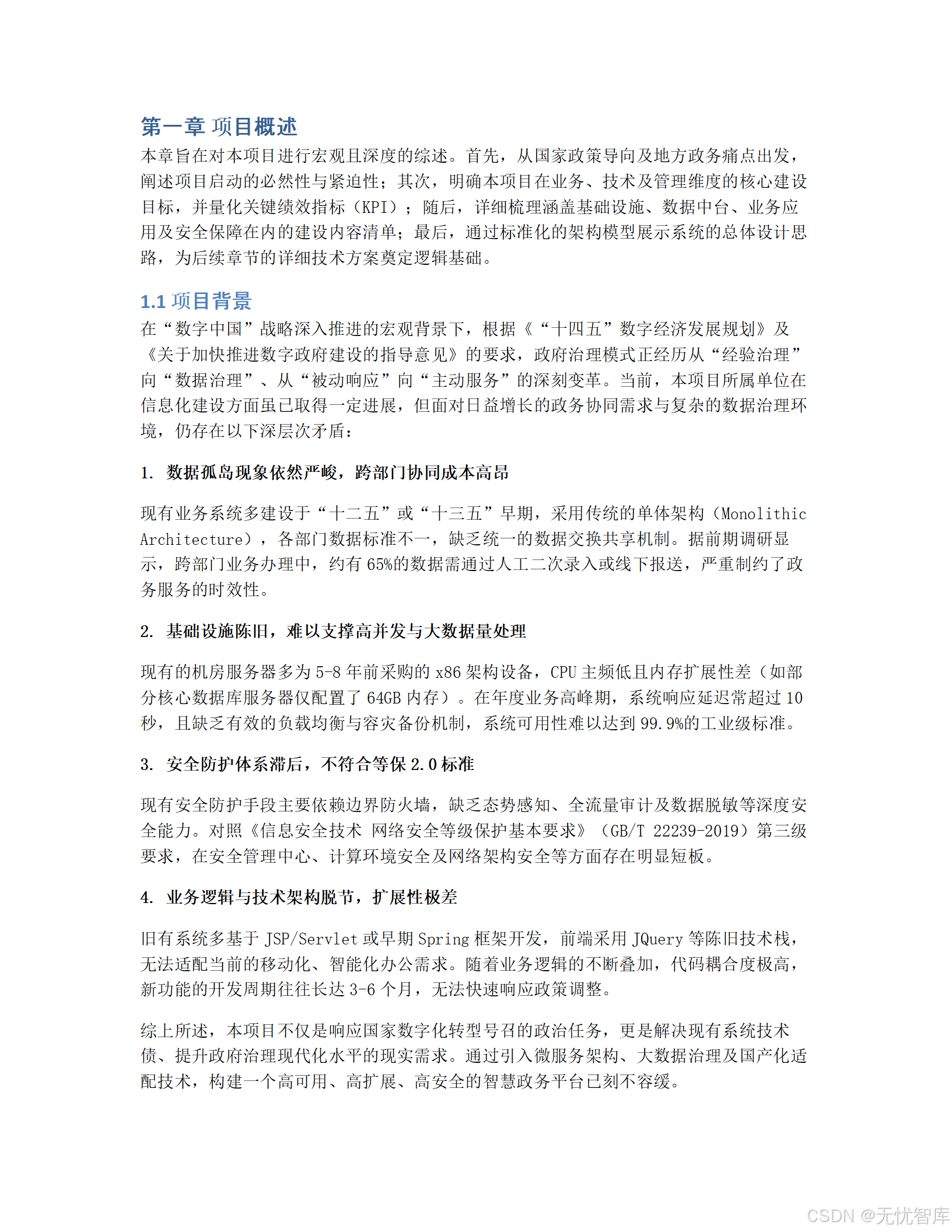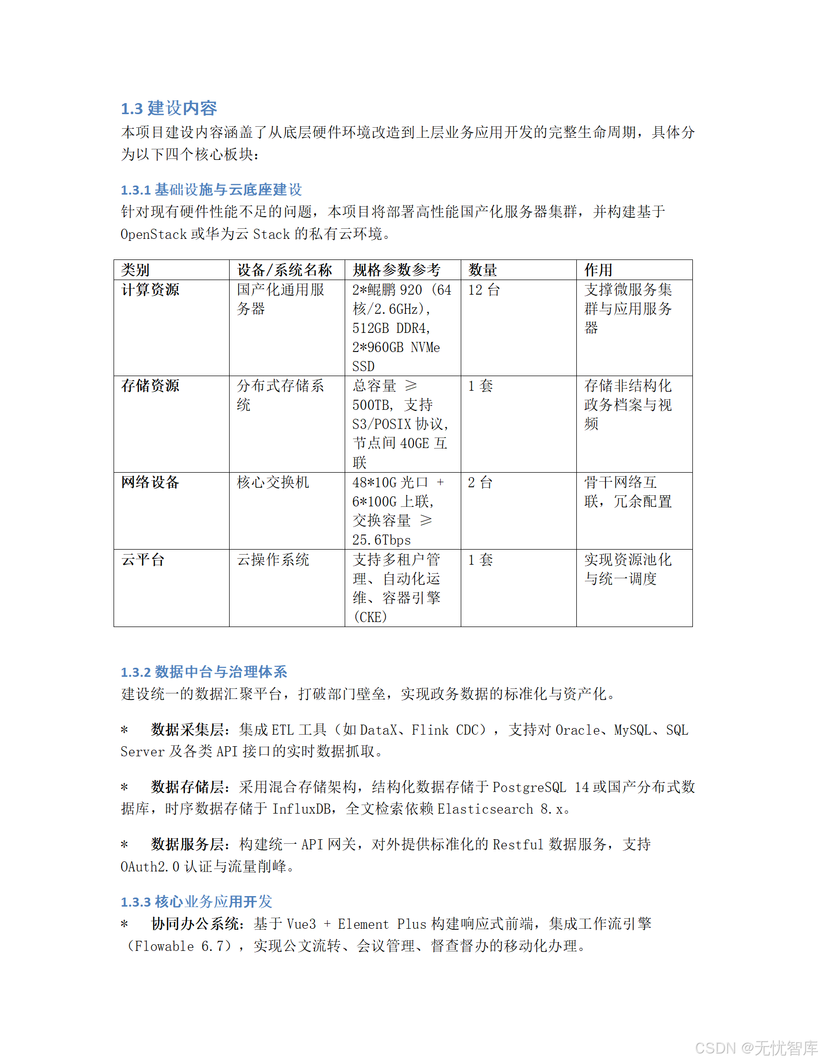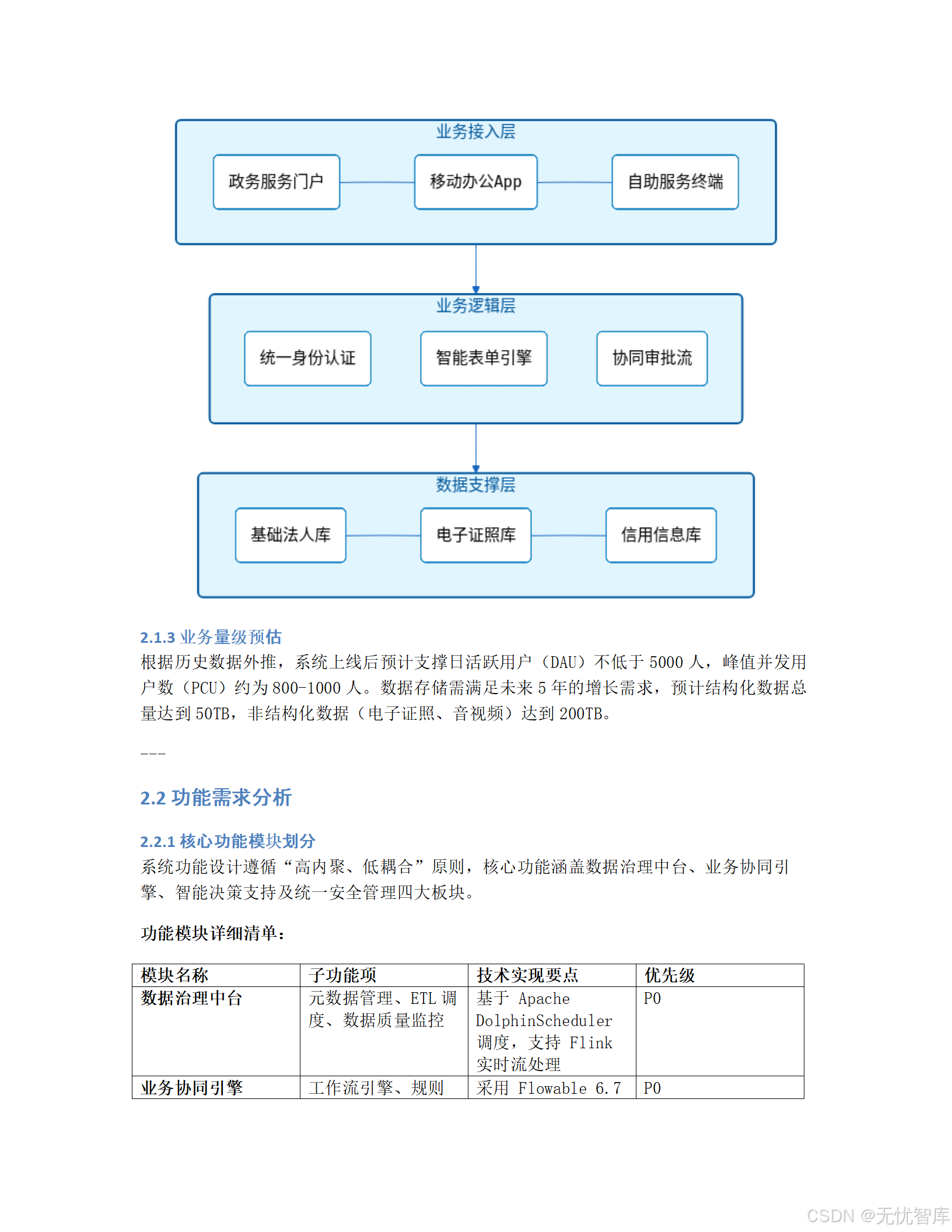 选型逻辑 :这套技术栈兼顾了先进性 (微服务、云原生)与稳定性(PostgreSQL、Redis均为业界久经考验的组件),是政务系统的理想选择。