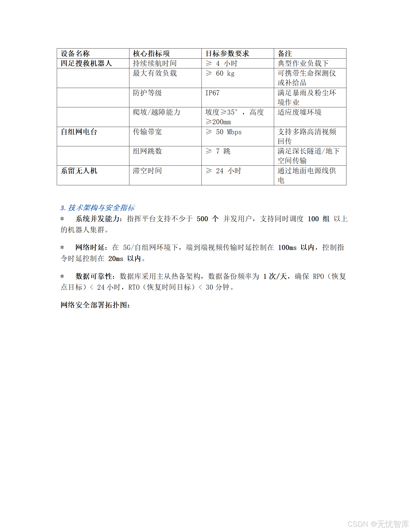 - 现场部署时间 :现场自组网建立及无人机升空侦察时间控制在 3分钟以内。