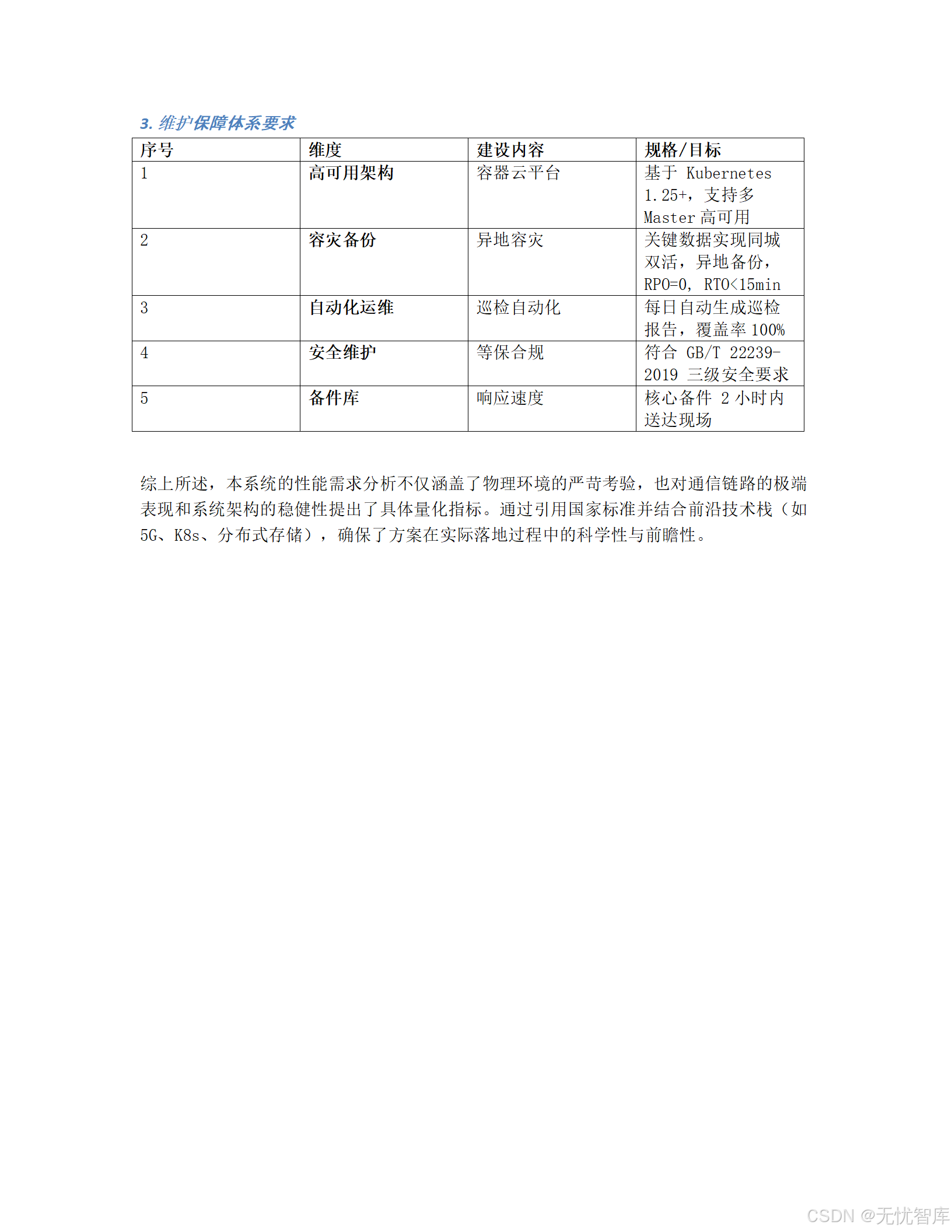 - 容灾备份 :建立同城双活机制,遵循"3-2-1"备份原则。