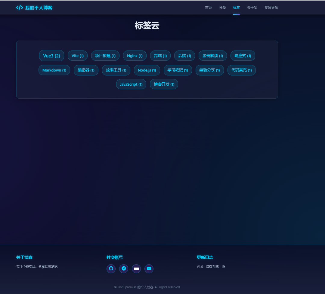 - 标签云展示(字体大小根据文章数量)