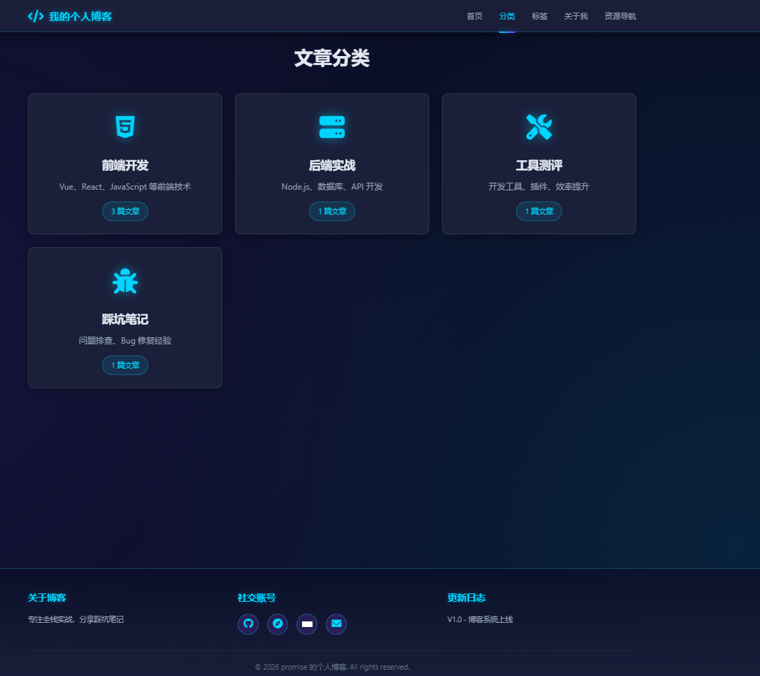 - 按技术领域分类:【如前端开发、后端实战、工具测评、踩坑笔记】