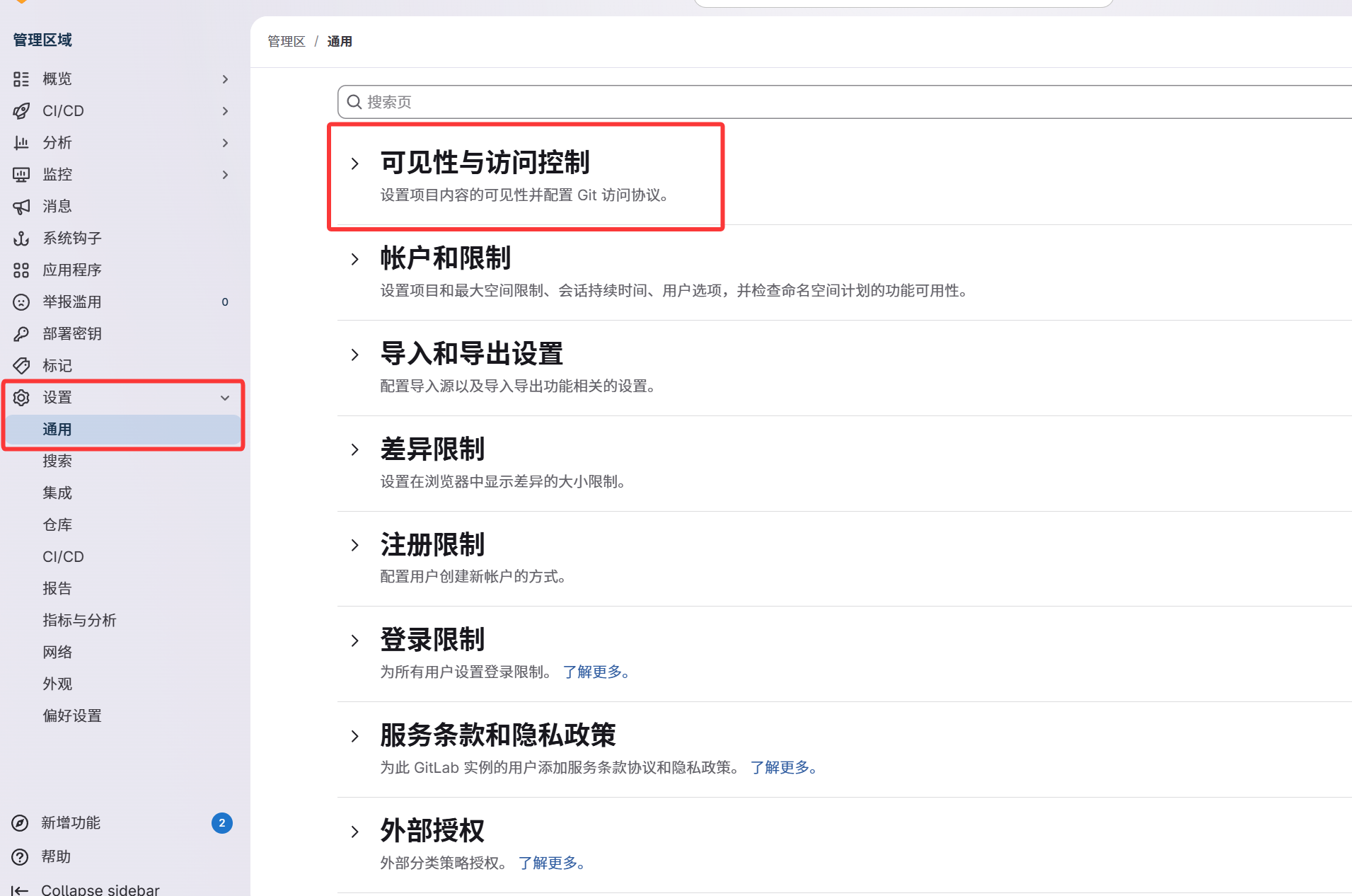 如果部署gitlab时,没有配置external_url , 可以用root账号登录gitlab,点击管理员