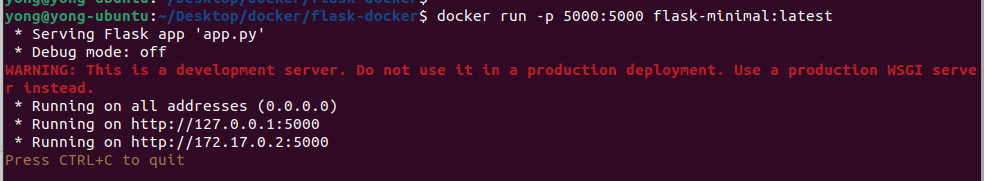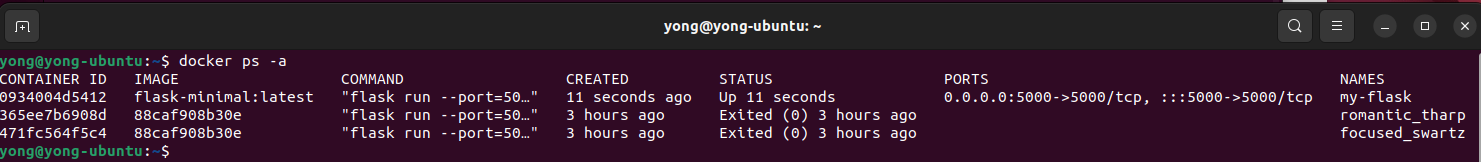 docker run -d -p 5000:5000 --name my-flask flask-minimal:latest