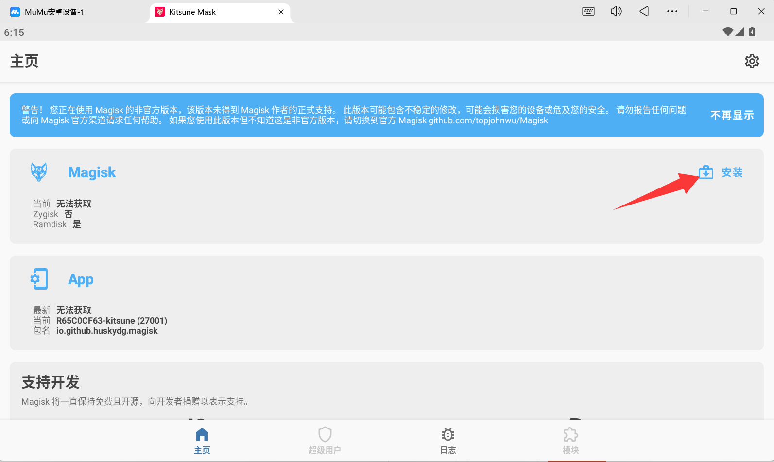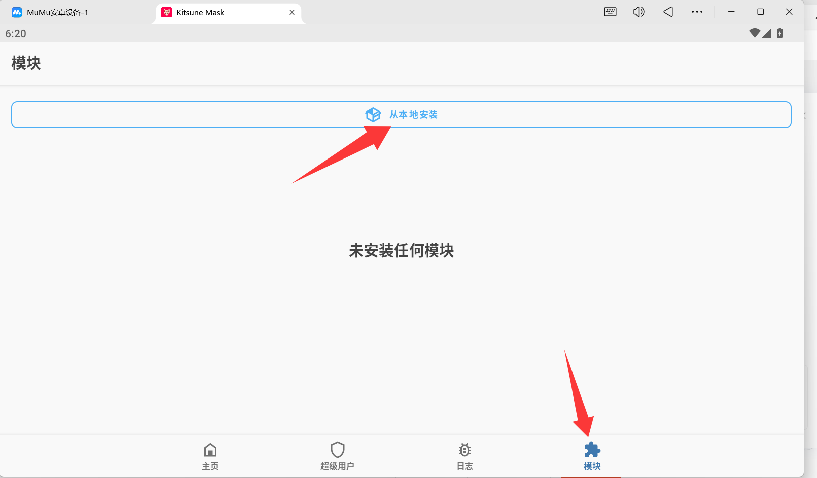 7.返回面具主页,点击模块安装lsp模块,重启模拟器即可