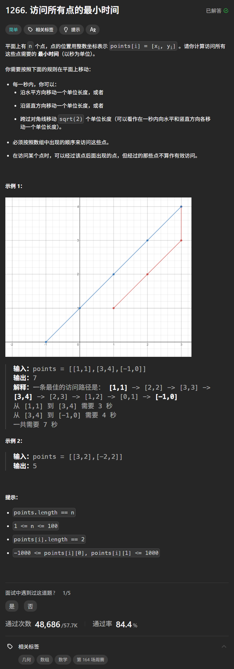 Leetcode---1266. 访问所有点的最小时间