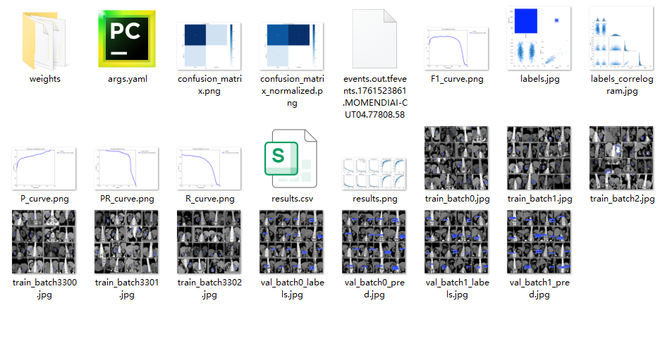 我们每次训练后,会在 run/train 文件夹下出现一系列的文件,如下图所示:
