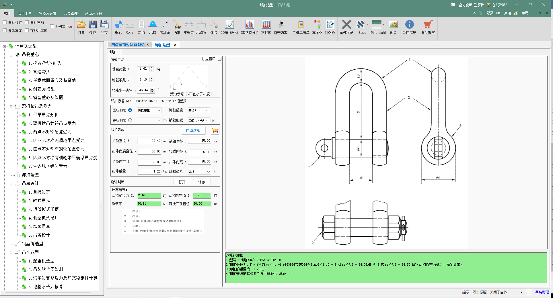 - 高效设计工作流:计算结果(如最大拉力FLmax、吊点力Pa等)可一键传递至后续的卸扣、吊耳、钢丝绳选型模块,实现从分析到设计的无缝衔接。