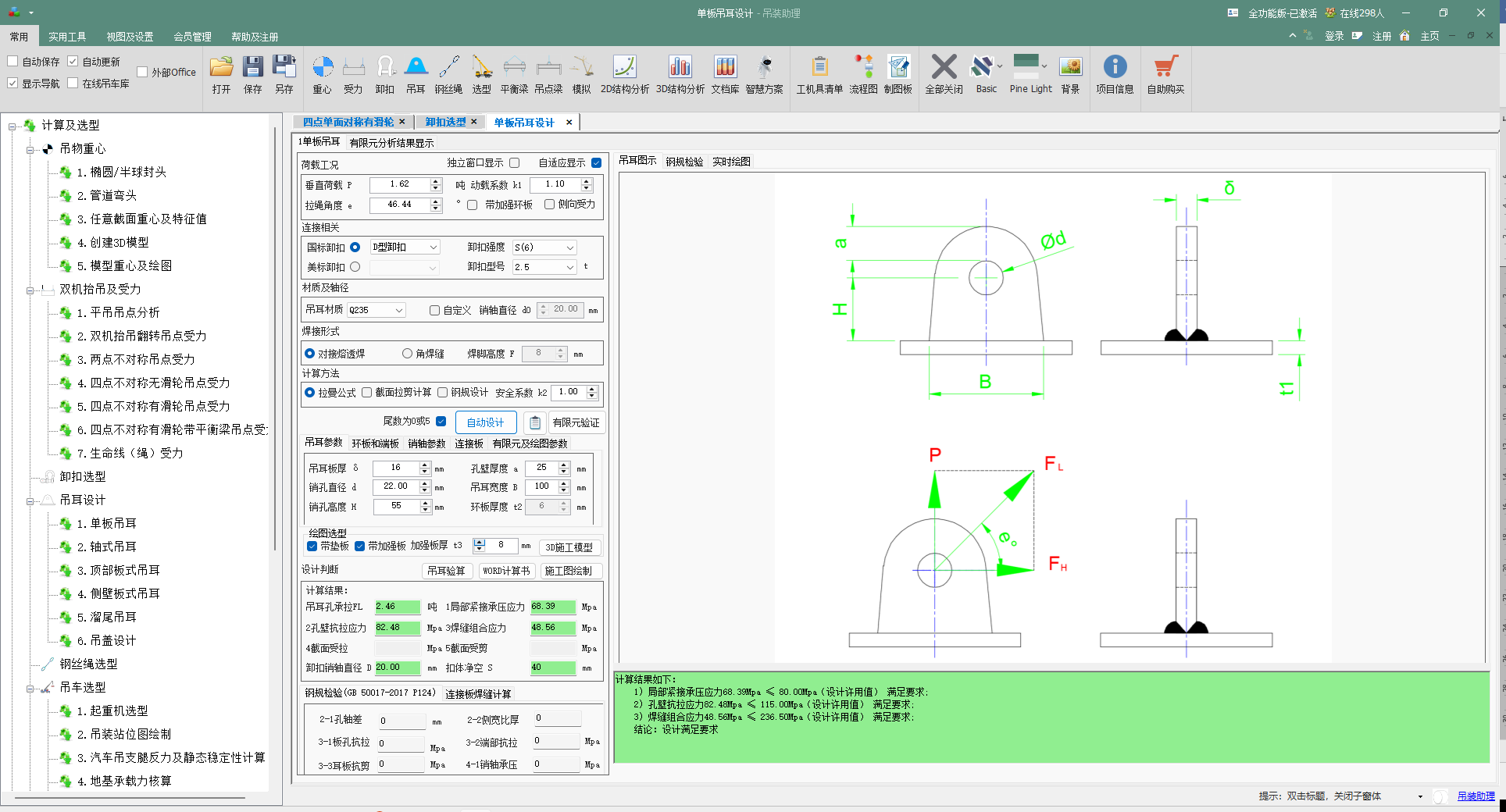 - 对吊点:将最大的吊点垂直力(如Pa, Pb中的大值)代入吊耳设计模块,校核设备本体或吊耳强度是否满足。