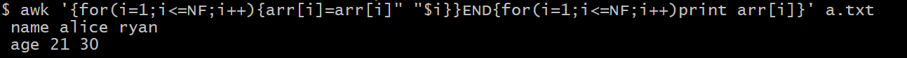 awk '{for(i=1;i<=NF;i++){arr[i]=arr[i]" "$i}}END{for(i=1;i<=NF;i++)print arr[i]}' a.txt