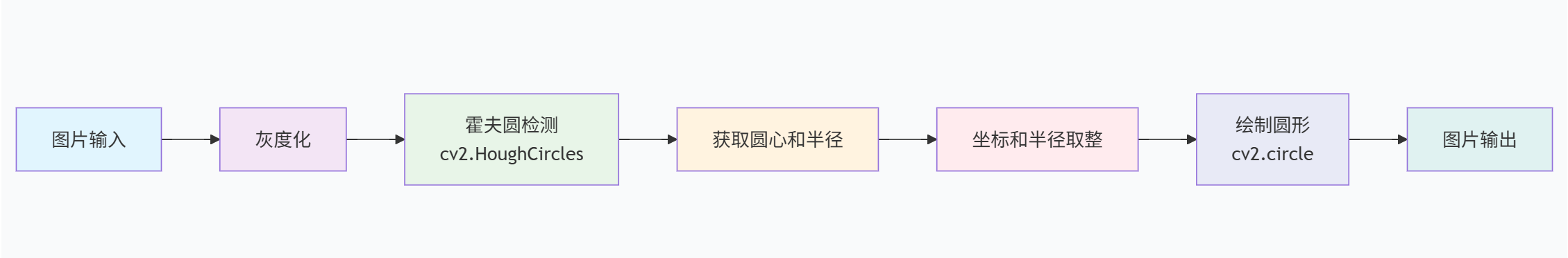 image:输入图像,8位单通道灰度图像method:检测方法cv2.HOUGH_GRADIENT:标准霍夫梯度法cv2.HOUGH_GRADIENT_ALT:替代梯度法,精度更高